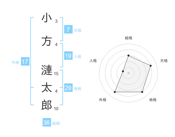 小方 漣太郎さんを姓名の画数から五運を鑑定