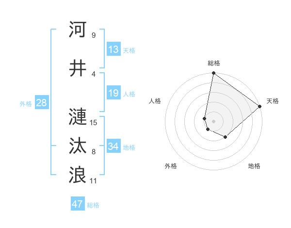 河井 漣汰浪さんを姓名の画数から五運を鑑定