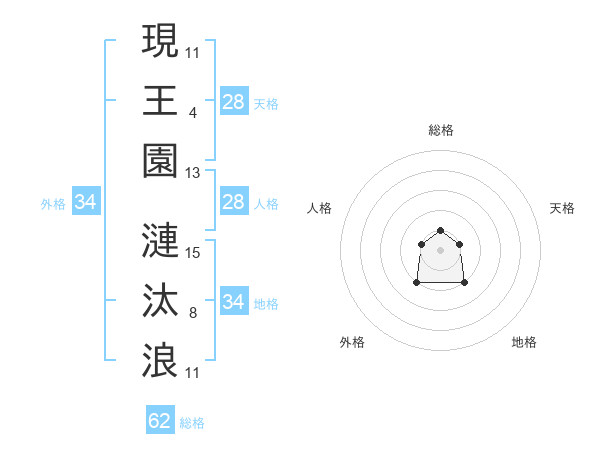 現王園 漣汰浪さんの天格は28画の1点