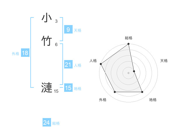 小竹 漣さんの総格は24画の5点!