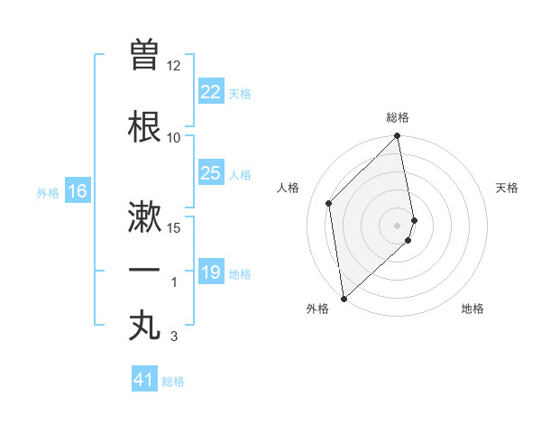 曽根 漱一丸さんの総格は41画の5点