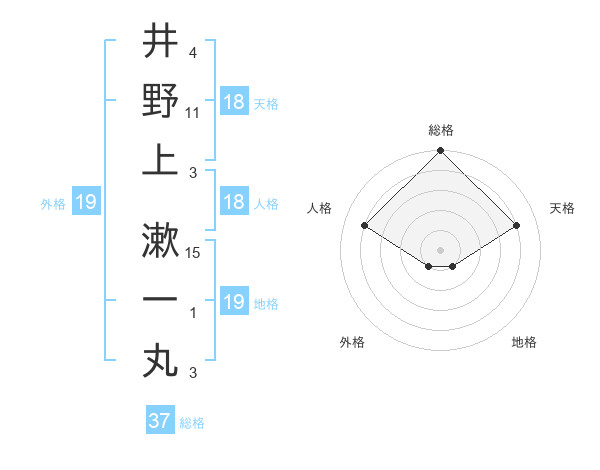 井野上 漱一丸さんを姓名の画数から五運を鑑定
