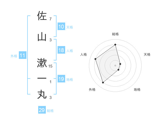 佐山 漱一丸さんの総格は29画の4点!