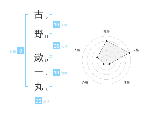 古野 漱一丸さんを姓名の画数から五運を鑑定