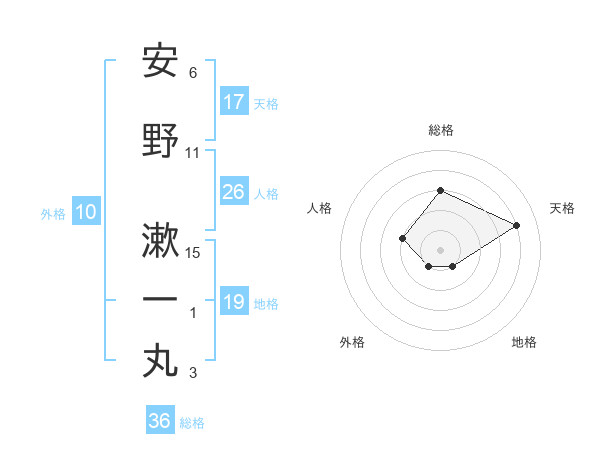 安野 漱一丸さんを姓名の画数から五運を鑑定