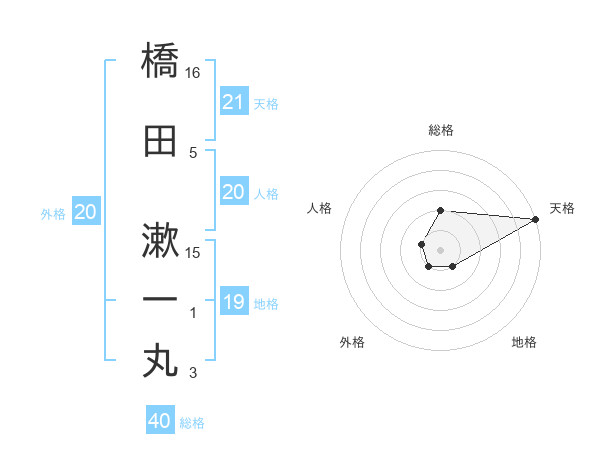 橋田 漱一丸さんを姓名の画数から五運を鑑定
