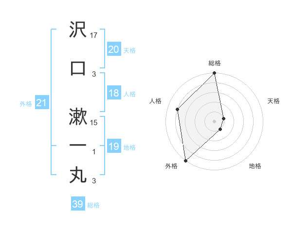 沢口 漱一丸さんを姓名の画数から五運を鑑定