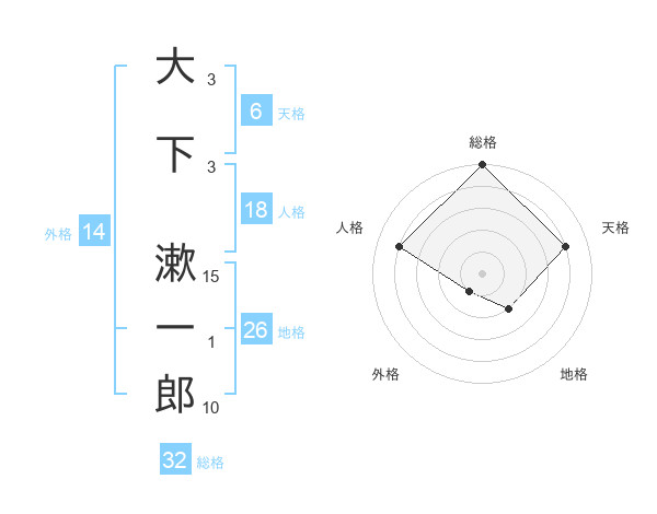 大下 漱一郎さんを姓名の画数から五運を鑑定