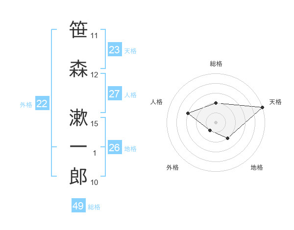 笹森 漱一郎さんの総格は49画の2点