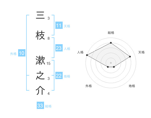 三枝 漱之介さんを姓名の画数から五運を鑑定