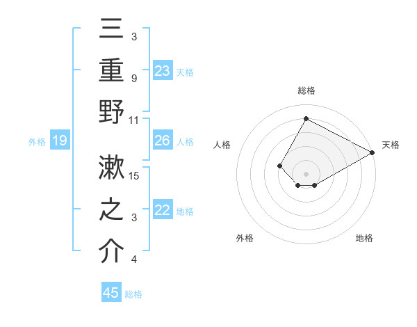 三重野 漱之介さんを姓名の画数から五運を鑑定