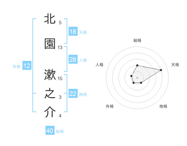 北園 漱之介さんを姓名の画数から五運を鑑定