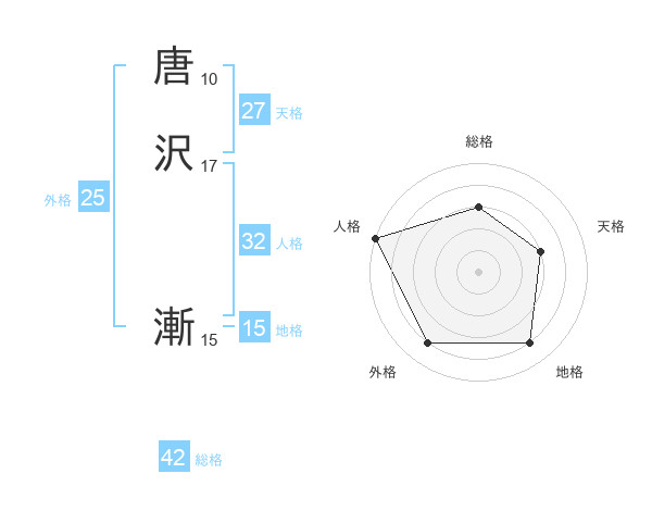 唐沢 漸さんを姓名の画数から五運を鑑定