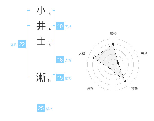 小井土 漸さんの外格は22画の1点!