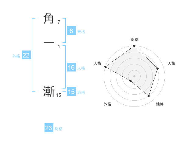 角一 漸さんの総格は23画の5点!