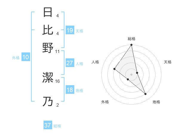 日比野 潔乃さんの天格は19画の1点!