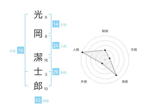 光岡 潔士郎さんの天格は14画の1点!
