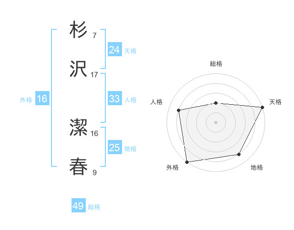 杉沢 潔春さんを姓名の画数から五運を鑑定