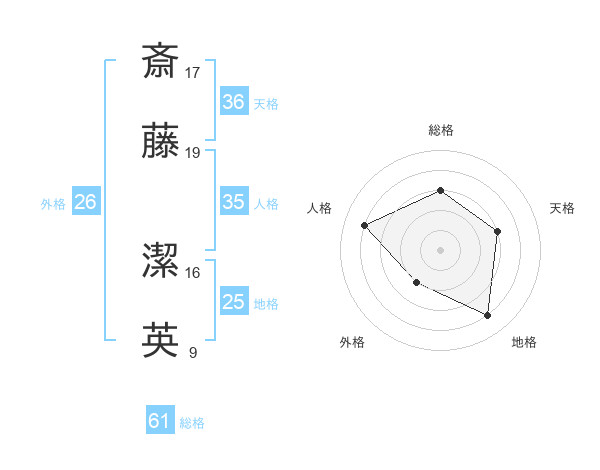 斎藤 潔英さんの総格は61画の3点!