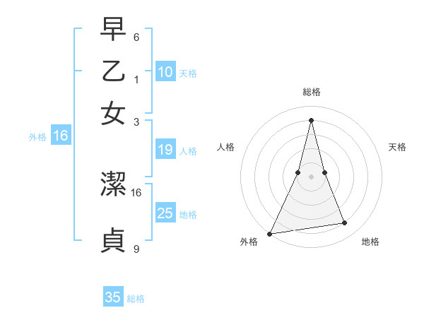 早乙女 潔貞さんの総格は35画の4点!