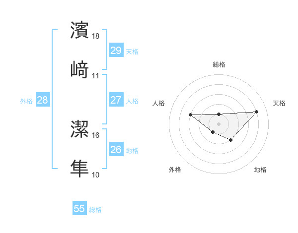 濱﨑 潔隼さんの総格は55画の1点!