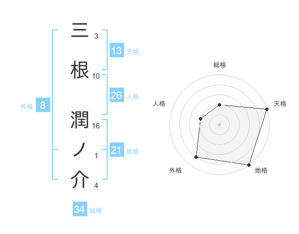 三根 潤ノ介さんを姓名の画数から五運を鑑定