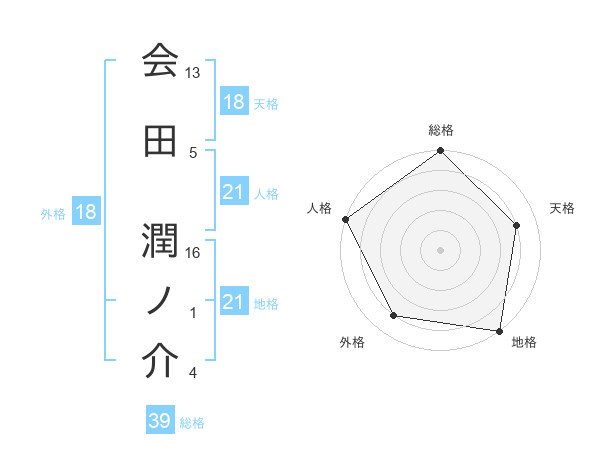 会田 潤ノ介さんを姓名の画数から五運を鑑定