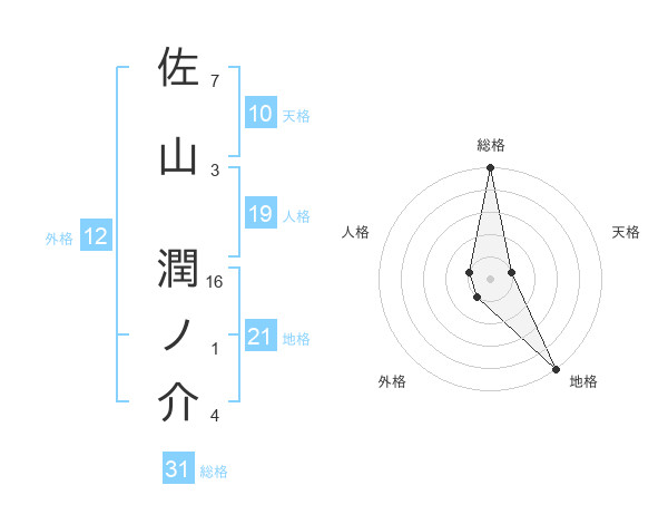 佐山 潤ノ介さんを姓名の画数から五運を鑑定