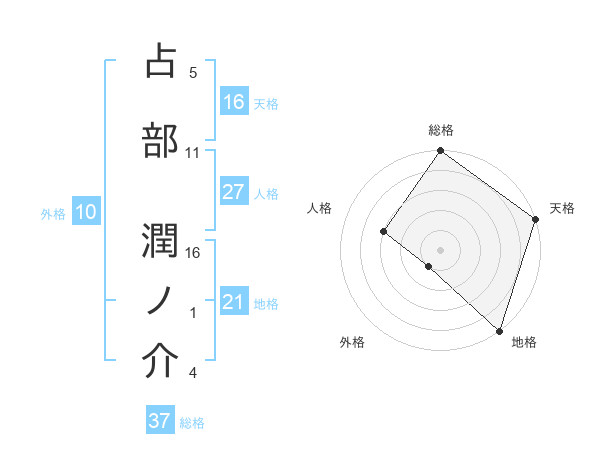 占部 潤ノ介さんの天格は16画の5点!