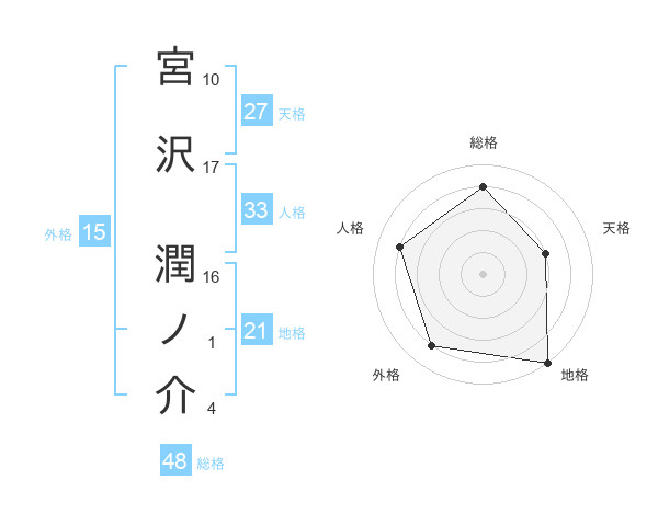 宮沢 潤ノ介さんを姓名の画数から五運を鑑定