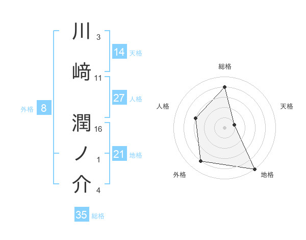 川﨑 潤ノ介さんを姓名の画数から五運を鑑定