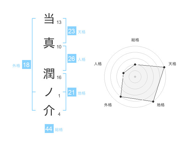当真 潤ノ介さんを姓名の画数から五運を鑑定