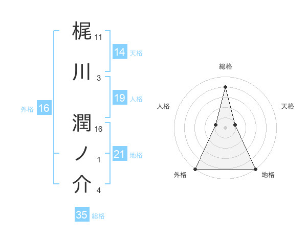 梶川 潤ノ介さんの総格は35画の4点!
