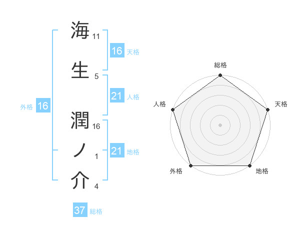 海生 潤ノ介さんを姓名の画数から五運を鑑定