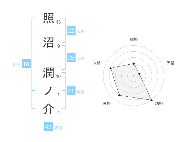 照沼 潤ノ介さんの総格は43画の2点!