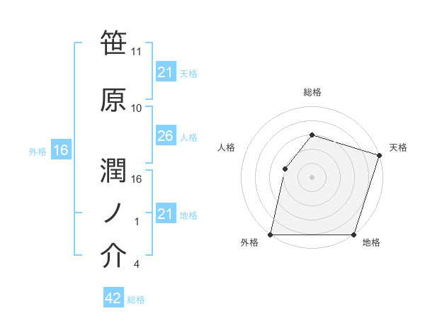 笹原 潤ノ介さんを姓名の画数から五運を鑑定