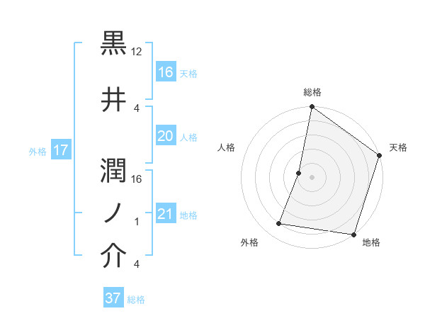 黒井 潤ノ介さんを姓名の画数から五運を鑑定
