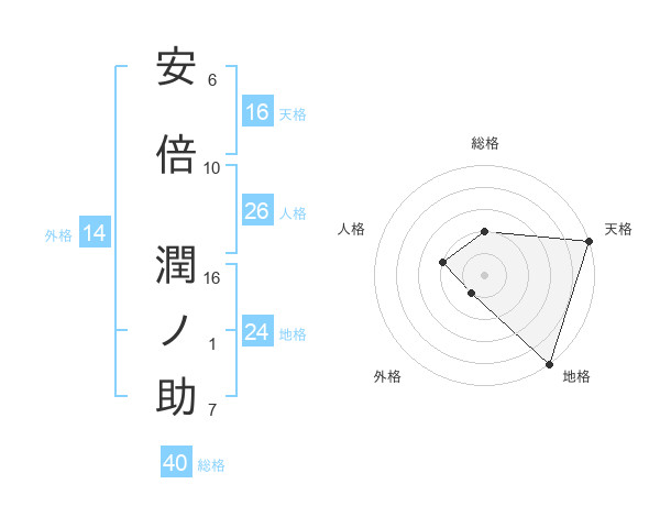 安倍 潤ノ助さんを姓名の画数から五運を鑑定