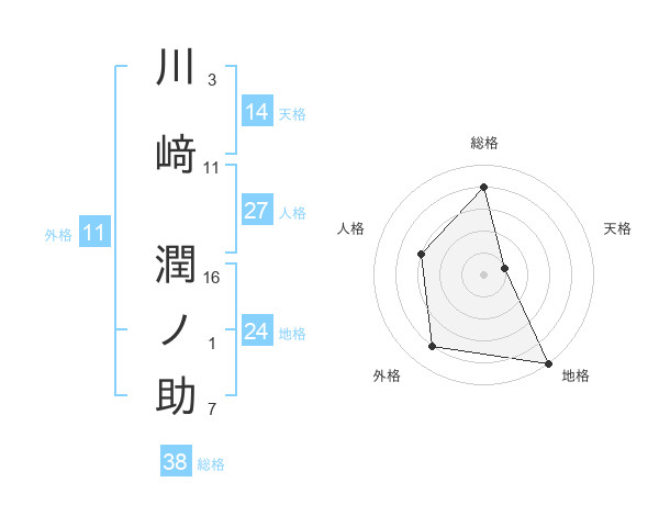 川﨑 潤ノ助さんの総格は38画の4点!