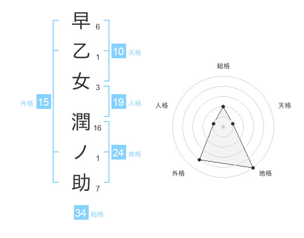 早乙女 潤ノ助さんを姓名の画数から五運を鑑定