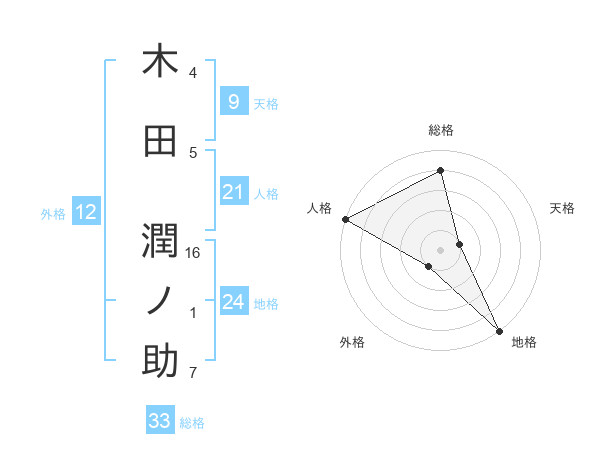 木田 潤ノ助さんの地格は24画の5点!