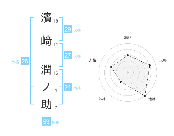 濱﨑 潤ノ助さんの総格は53画の3点!