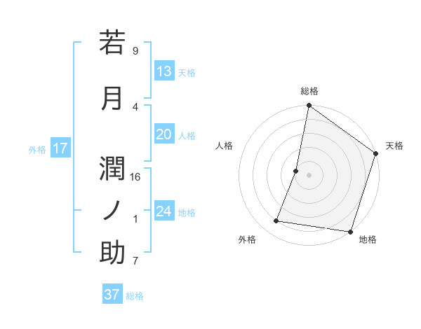 若月 潤ノ助さんを姓名の画数から五運を鑑定