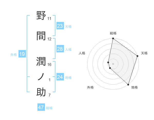 野間 潤ノ助さんを姓名の画数から五運を鑑定