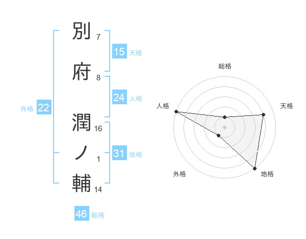 別府 潤ノ輔さんを姓名の画数から五運を鑑定