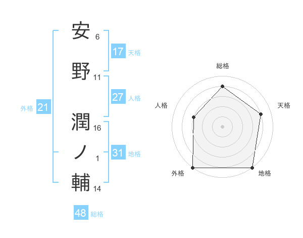 安野 潤ノ輔さんを姓名の画数から五運を鑑定