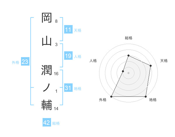岡山 潤ノ輔さんの総格は42画の3点