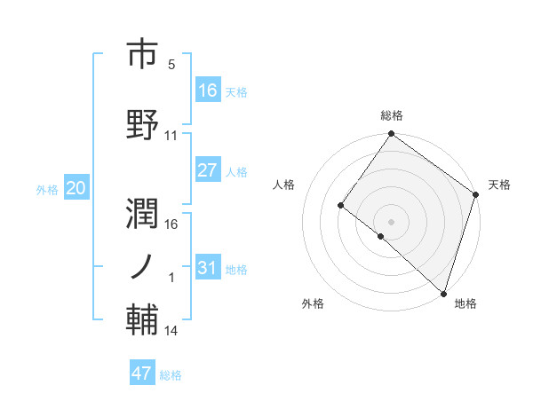 市野 潤ノ輔さんの総格は47画の5点!