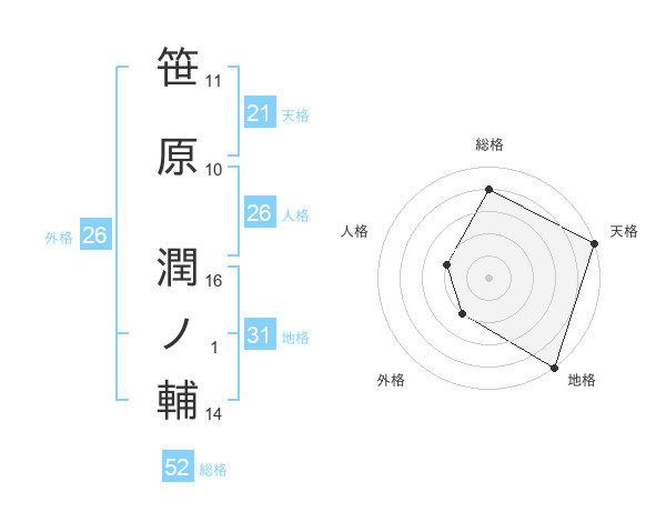 笹原 潤ノ輔さんを姓名の画数から五運を鑑定