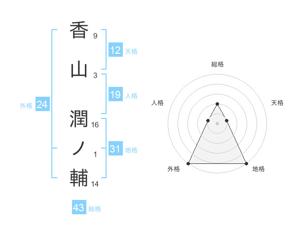 香山 潤ノ輔さんの総格は43画の2点!